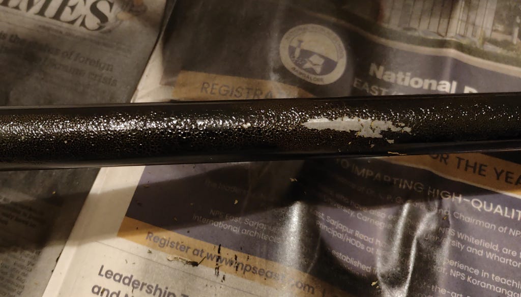 Then it hit me, my dumbass brain forgot to remove the oil applied on the brake discs and the pipe to prevent rusting during build process. Now I had to remove all the paint, primer and do it all over again…
