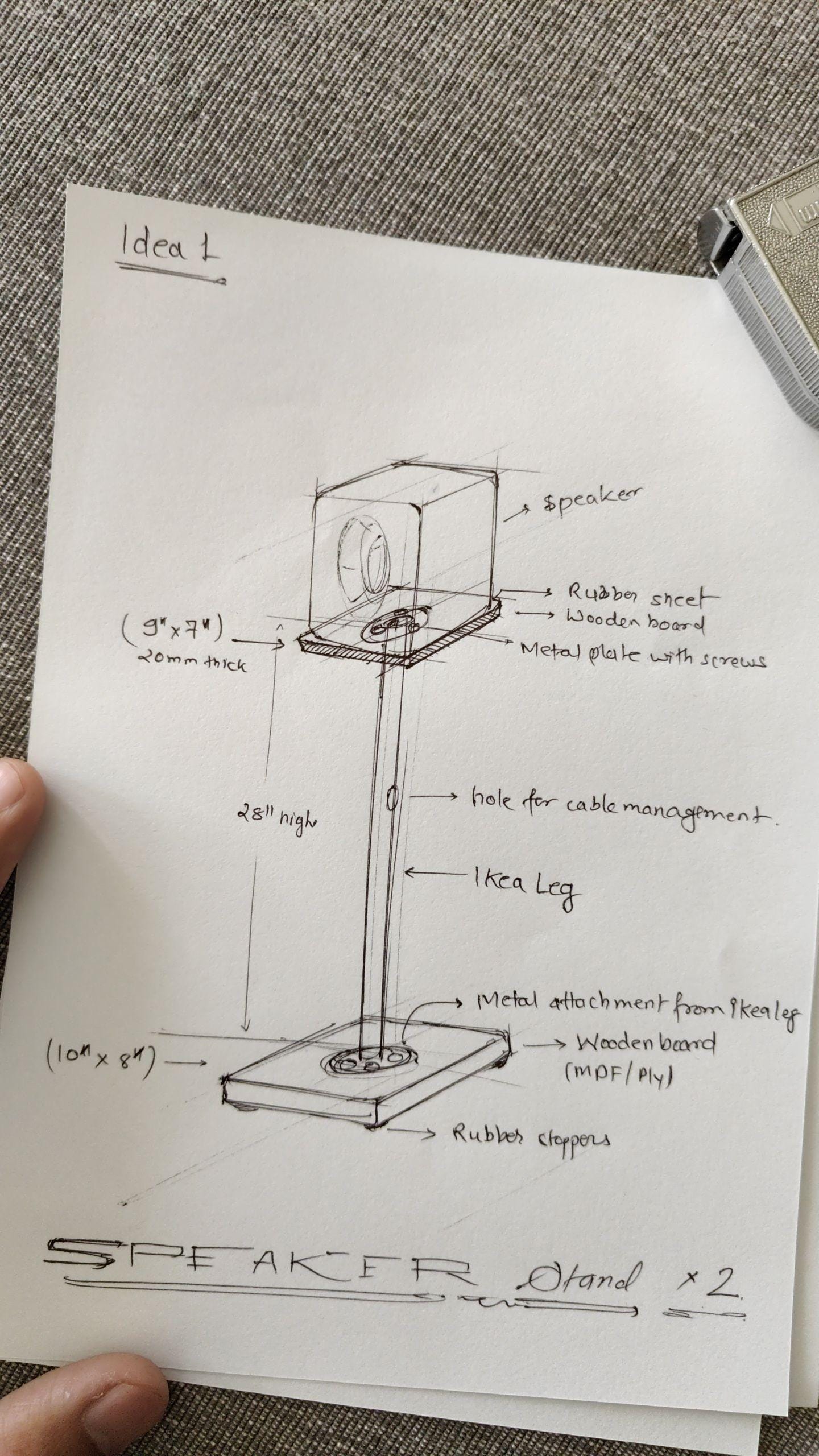 …a nagging feeling that my 10-year old Q Acoustics speakers weren’t positioned for right convergence. Either perched awkwardly on a table or shoved next to the tv, they lacked the right placement to deliver that full, rich sound. I needed a proper stand—a pedestal, is sturdy yet slim enough not to overwhelm the room. Buying one off the market wasn’t even an option; the quality-versus-cost compromise just didn’t sit right with me. So, I decided to build my own.