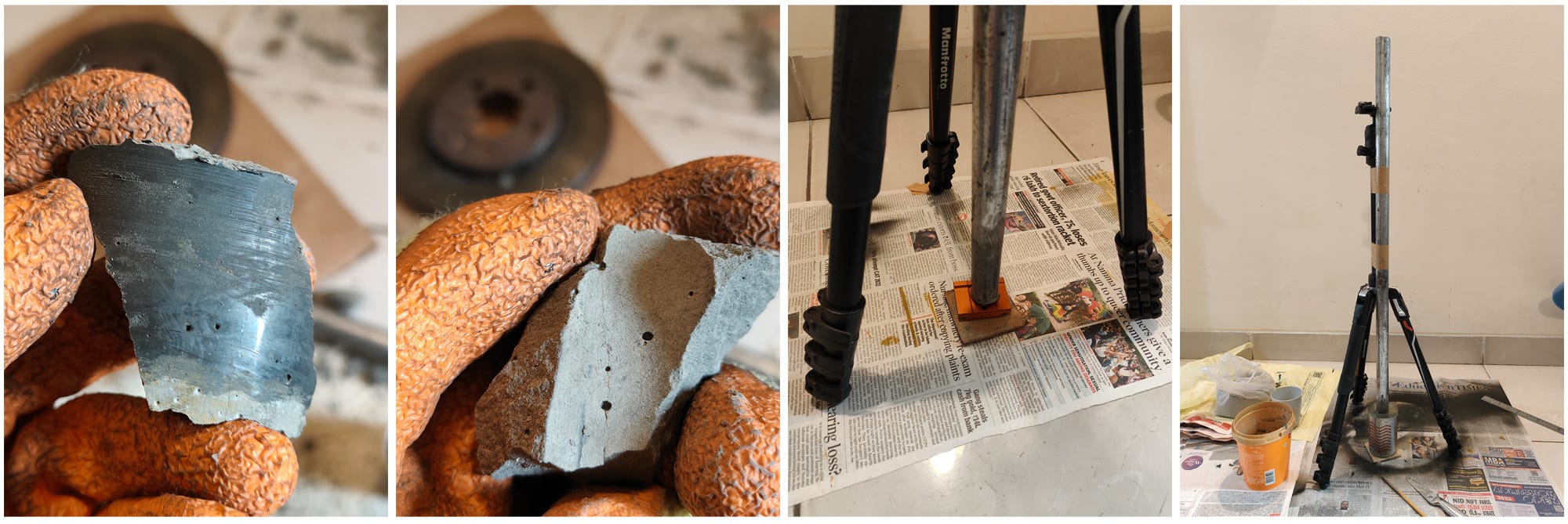 Up until then, I had not worked with cement and had no idea about its properties. I went to YouTube, digging into the basics: it sets in 2 days, cures in at least 7-9 days and water is extremely important for its strength. Theoretically armed, I went to a near by hardware store and got plenty of cement just for ₹30, some screws, washers and tiny L brackets.