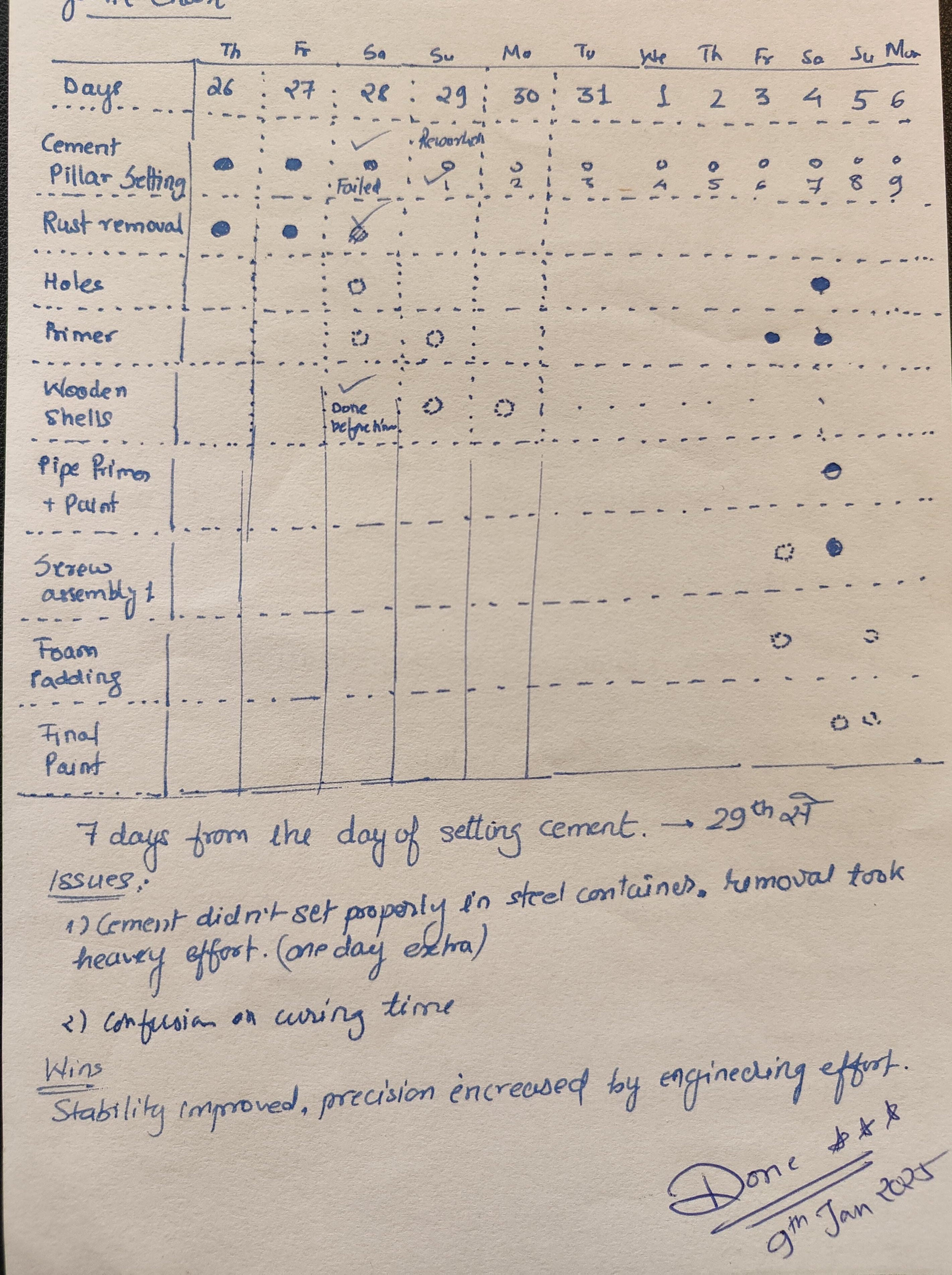 Damn! But before that thought could overwhelm me, I sat down, donned my manager hat and drew a proper gantt chart! Since all the processes were already figured out, materials were ready, it shouldn’t take more than 6-9 days of effort to put the second pieces together.